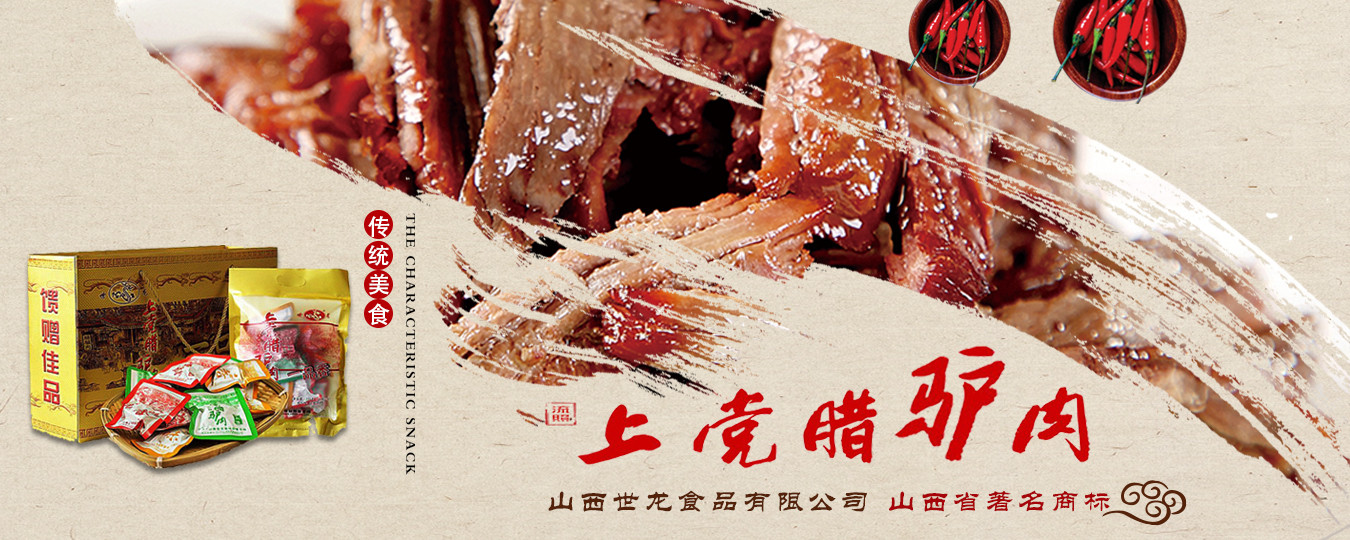山西世龍食品有限公司是以“世龍”牌上黨臘驢肉系列產(chǎn)品為主導(dǎo),集科研開發(fā)、良種繁育、基地建設(shè)、生產(chǎn)加工、市場營銷于一體的農(nóng)業(yè)產(chǎn)業(yè)化國家重點龍頭企業(yè)、全國農(nóng)業(yè)標(biāo)準化示范區(qū)、全國食品行業(yè)優(yōu)秀龍頭企業(yè)、山西省農(nóng)業(yè)產(chǎn)業(yè)化重點龍頭企業(yè)、山西省農(nóng)產(chǎn)品加工“513”工程單位、山西省帶動貧困地區(qū)基地建設(shè)重點龍頭企業(yè)、山西省民營畜牧業(yè)示范基地、山西省質(zhì)量信譽AAA級單位、山西省重合同守信用單位、山西省消費者協(xié)會誠信單位、山西省民營科技企業(yè)。